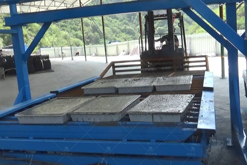 2、將混合好的混凝土倒入預制件模具內,經振動平臺振動30秒左右,去下置于陰涼避光的倉庫之內。